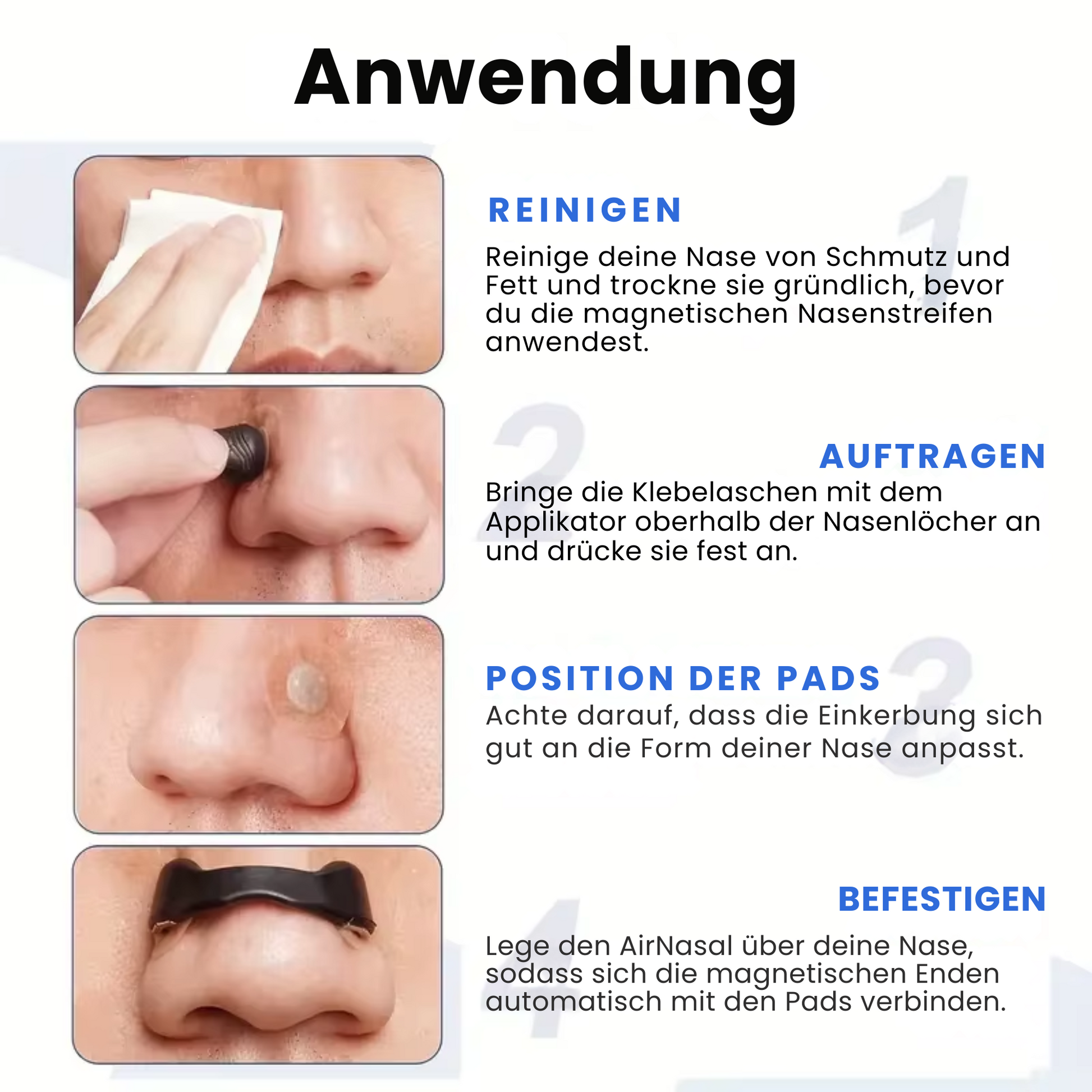 -Stelle sicher, dass deine Nase sauber und trocken ist, bevor du die Magnetpads anbringst.